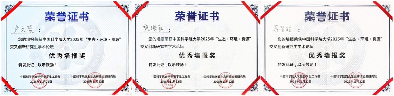 論壇設(shè)置“生態(tài)與環(huán)境領(lǐng)域組”“資源與工程領(lǐng)域組”及“弘揚(yáng)科學(xué)家精神與研究生思政教育管理研討組”三大專題板塊,聚焦國家戰(zhàn)略需求與科技前沿,推動(dòng)學(xué)科融合與協(xié)同創(chuàng)新。青海鹽湖所研究生緊扣青藏高原生態(tài)安全屏障、柴達(dá)木盆地資源高效利用與環(huán)境保護(hù)等關(guān)鍵科學(xué)問題等多個(gè)方向進(jìn)行學(xué)術(shù)報(bào)告和墻報(bào)展示?,F(xiàn)場討論熱烈,學(xué)術(shù)氛圍濃厚。通過這一高水平平臺,青海鹽湖所研究生不僅展示了最新的科研進(jìn)展,更與兄弟院所建立了深入的學(xué)術(shù)聯(lián)系,為后續(xù)合作奠定了良好基礎(chǔ)。參會(huì)研究生們憑借出色表現(xiàn),成績斐然。孫博妍榮獲優(yōu)秀學(xué)術(shù)報(bào)告一等獎(jiǎng);董博與史暉煬榮獲優(yōu)秀學(xué)術(shù)報(bào)告三等獎(jiǎng);馬智超、甄璐菲、盧文薇的墻報(bào)榮獲優(yōu)秀墻報(bào)獎(jiǎng)。